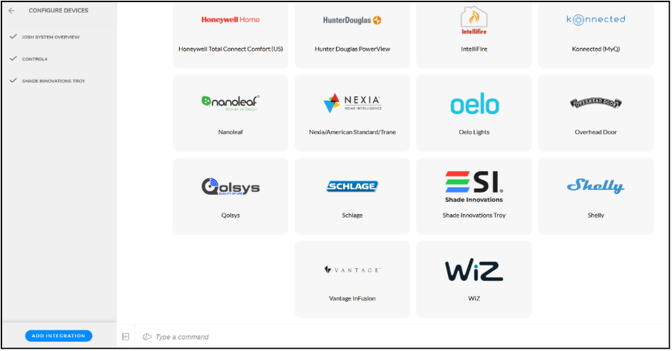 - Once configured, you can control TROY devices through the JOSH system using the Areas page, mobile app, or voice commands.